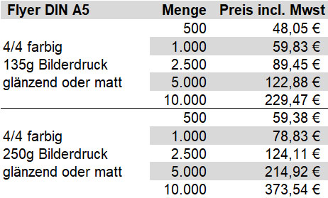Unsere Standardflyer