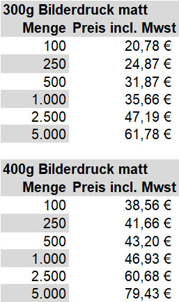 Für weitere Varianten an Papiersorten oder Veredelung senden sie uns bitte eine Anfrage.